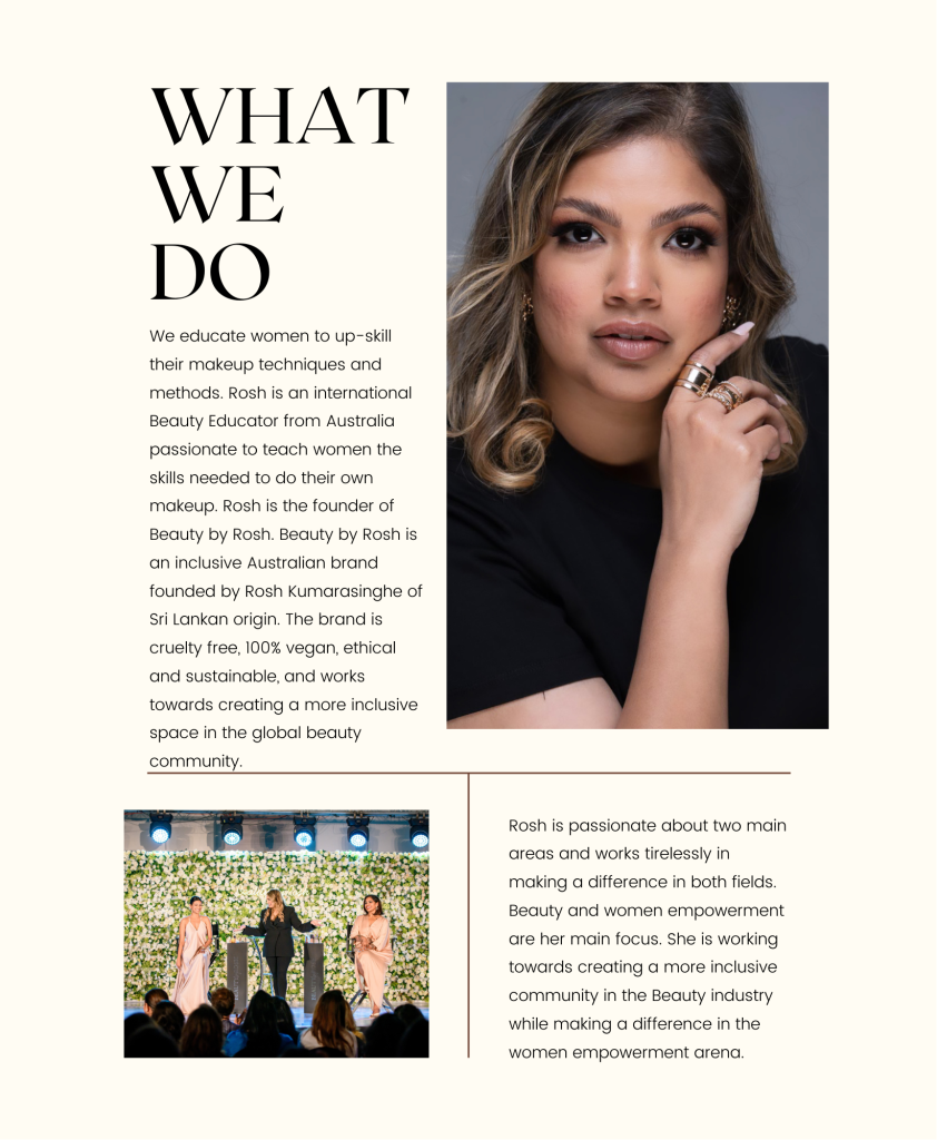 Beautybyrosh an inclusive Australian brand founded by Rosh Kumarasinghe of Sri Lankan origin. The brand is cruelty free, 100% vegan, ethical and sustainable, and works towards creating a more inclusive space in the global beauty community.