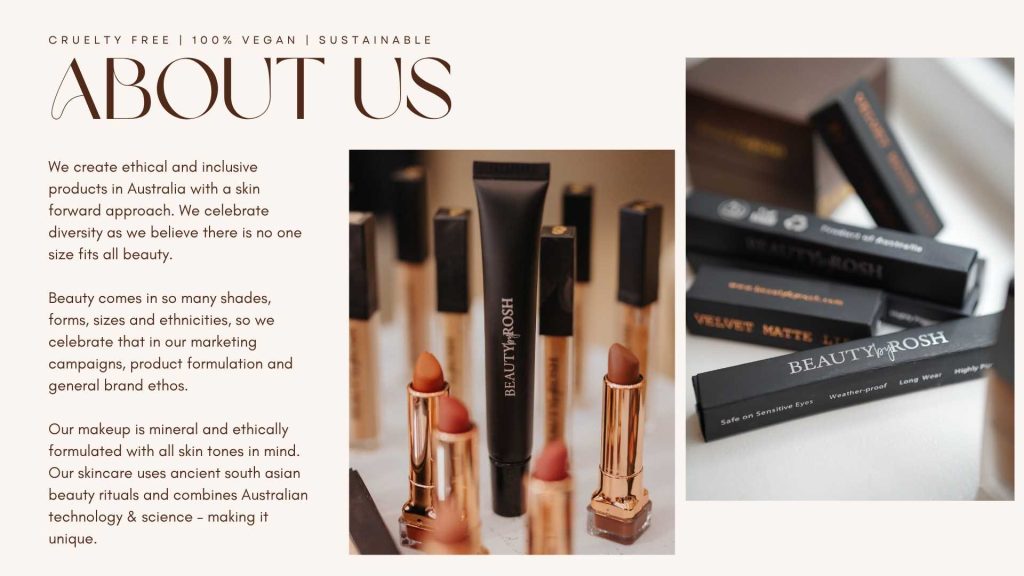 Beauty by Rosh an inclusive Australian brand founded by Rosh Kumarasinghe of Sri Lankan origin. The brand is cruelty free, 100% vegan, ethical and sustainable, and works towards creating a more inclusive space in the global beauty community.